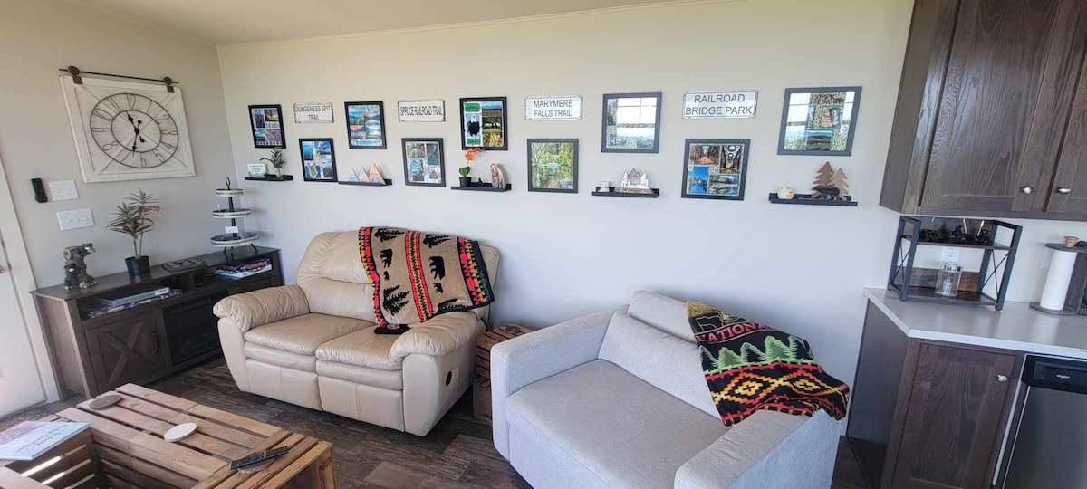 Modern, yet cozy 1BR/1BA container home in Gardiner, WA—perfectly situated between Sequim and Port Townsend, with easy access to Olympic National Park. Features a full kitchen, bright open layout, and a sunny deck with dining area and views of Discovery Bay and the San Juan Islands. Minutes from 7 Cedars casino, yet tucked away on a peaceful country estate. Come expeirence one of the best rated AirBnB's in the world! 5.0 rating with over 200 reviews! We look forward to hosting you.