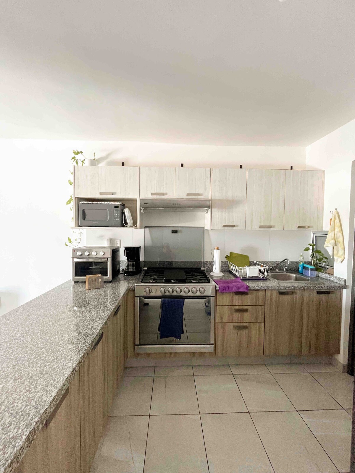 Newly remodeled apartment, fully furnished with all amenities. A huge bedroom with a king-size bed, a living room with a comfortable double sofa bed, a granite bar for eating, a kitchenette with everything you need for cooking, Wi-Fi, a smart TV with a Netflix account for exclusive use. Complimentary coffee, tea, and bottled water. Super location 5 minutes from Plaza Américas, Plaza Andamar and Plaza Vela. A 15-minute walk to the coastal area of Boca del Río.