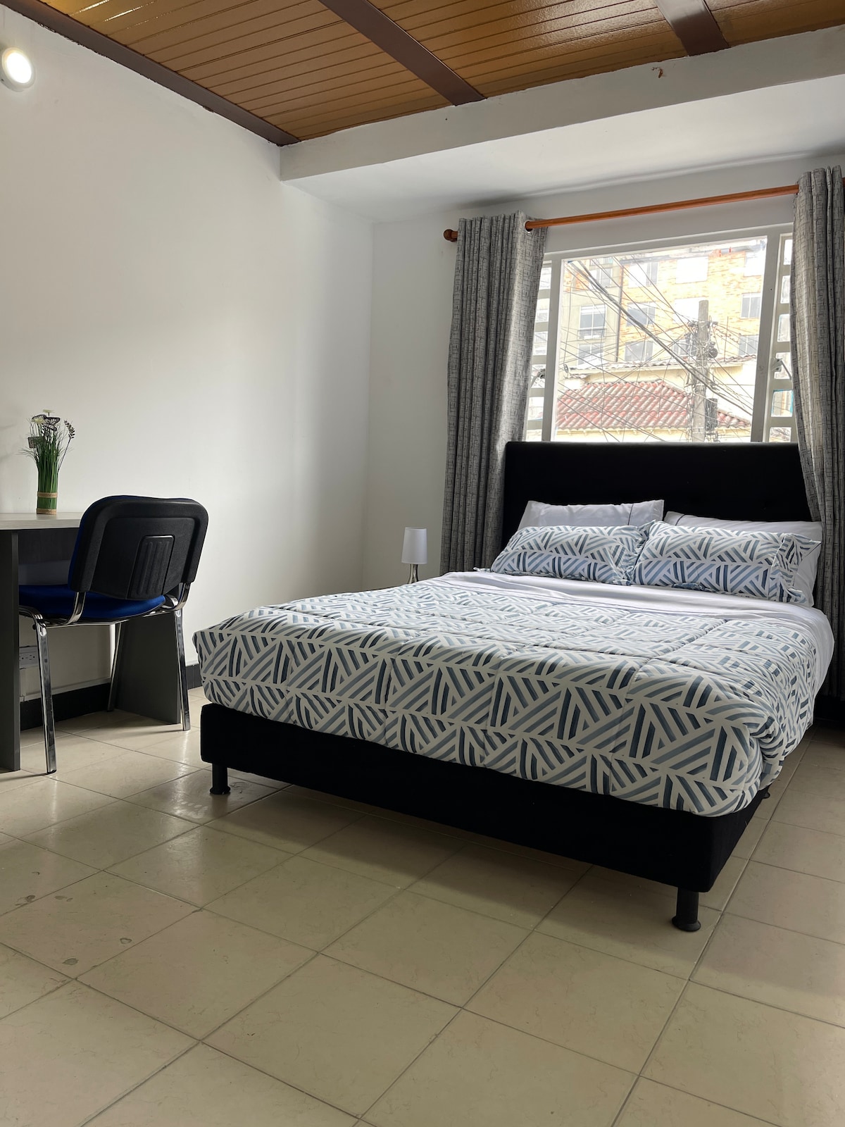Disfruta de esta hermosa y moderna habitación con baño privado, estarás, rodeado de restaurantes, cafeterías, supermercados y transporte público, lo que hace que desplazarte sea muy fácil. El espacio incluye acceso a dos cocinas sociales completamente equipadas, perfectas para preparar tus comidas favoritas con comodidad. hospédate con estilo y confort, ideal para quienes buscan un lugar acogedor, limpio y funcional durante su estadía. ¡Reserva ahora y vive una experiencia única en Bogotá!