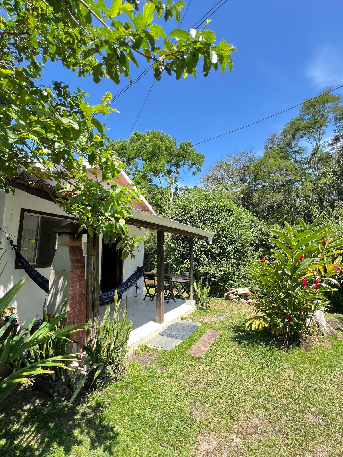 Small house located 3 km from the beach, in the Atlantic Forest on a large plot of land shared with another house. Beautiful, simple and quiet place. Ideal for couples, well decorated and comfortable. Well equipped with cookware, smart TV, Wi-Fi, microwave, refrigerator and stove in great condition, hammocks and games. 220V voltage. Balcony, shower, portable barbecue, parking and deck at the back, shared land enclosed with gates and fence. Forest area, and there may be the presence of wild animals.