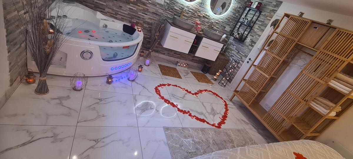 Vous adorerez le décor élégant de cet hébergement de charme. Au rez-de-chaussée de notre maison , vous auriez un accès complètement indépendant. Ce logement est équipé pour 4 personnes. Vous avez une chambre avec un lit pour 2 personnes ainsi qu'un canapé convertible dans le salon. Nous proposons également l'option Love Room ( bougies , ballon à l'hélium , pétale de rose ) pour 50 euros supplémentaire.(incluant les frais de ménages de 50 euros). Vous disposerez d'un espace à l'extérieur.