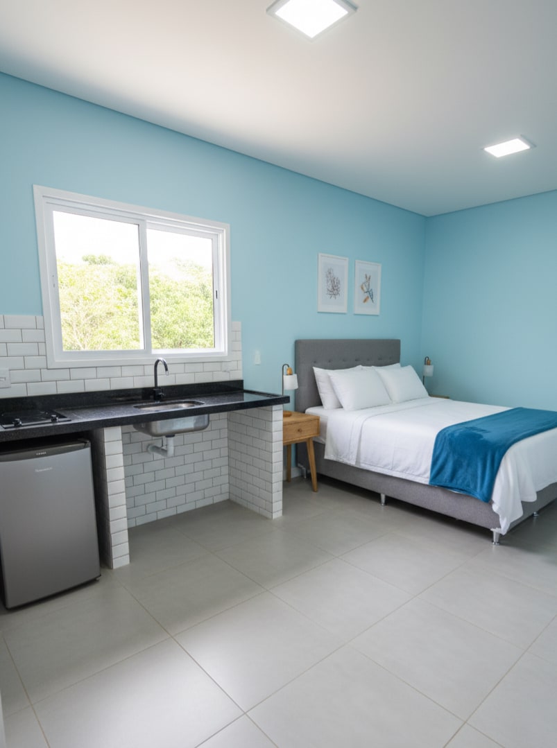 Recharge by staying at this wonderful rustic place. Suite with double bed, private bathroom, kitchenette with coffee maker and electric sandwich maker. EXCELLENT LOCATION, in the village of Moreré, 15 meters from the village beach and very close to restaurants and shops.