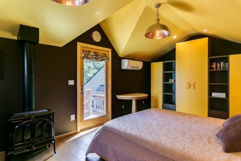 Private bedroom and bathroom with a king size bed. Climb the wooden staircase to your private entry and admire the beautiful pine trees above that gives it a nice little treehouse feel. The room decor is custom made imported Italian furniture that makes it perfect for a romantic getaway, business trips, or just a place to relax. Nearby, you can find mountain bike trails, Bogus Basin Mountain , the greenbelt, restaurants, pubs, and the city center.