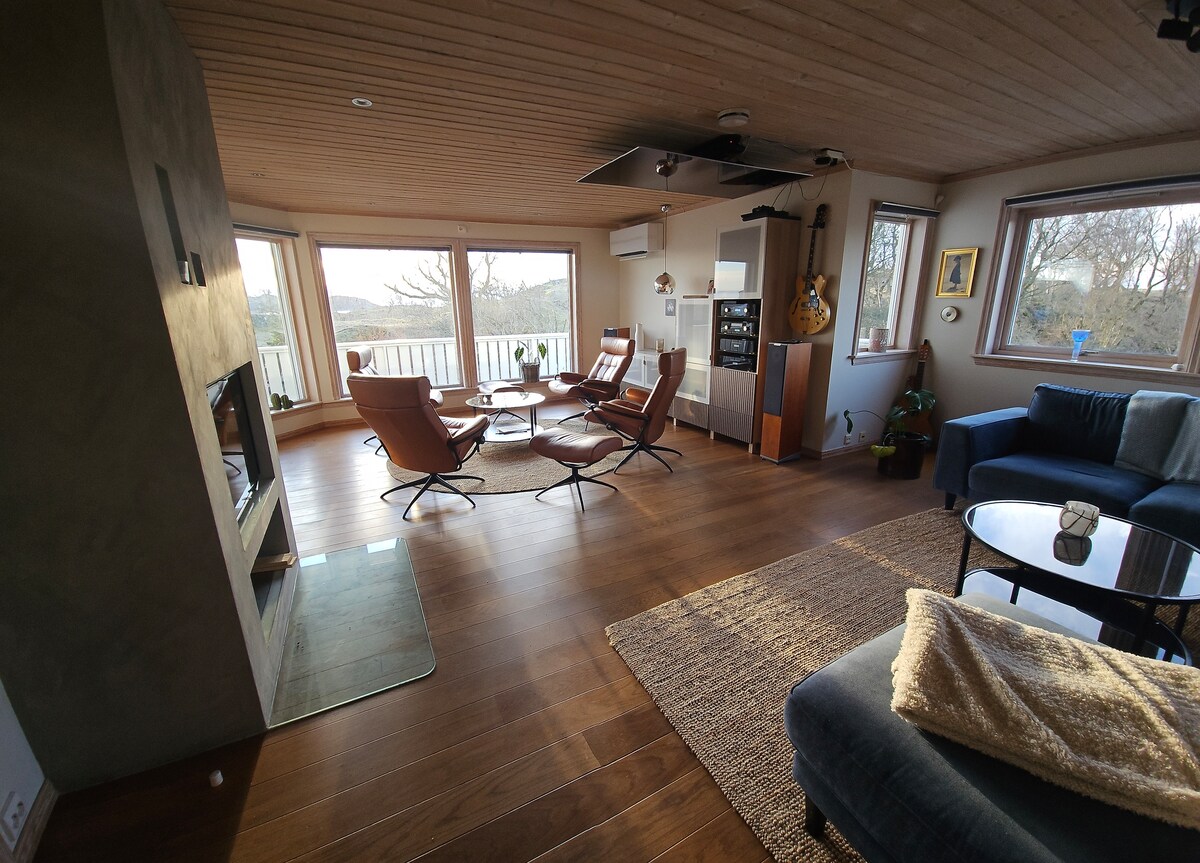 Boathouse newly built in 2025. Modern cabin located on the seafront, with a lovely view. Start warm summer days with a morning swim from the jetty, or sit warmly in the heat while the waves beat in the storm. The cabin is lovely regardless of the weather. It has 2 bedrooms downstairs, one with a double bed (160 cm) and a bunk bed (2x80 cm) and a large loft with 4 more beds. Outside there is a terrace with pergola, outdoor furniture and gas grill (summer time). Travel bed for baby and high chair available upon request.
