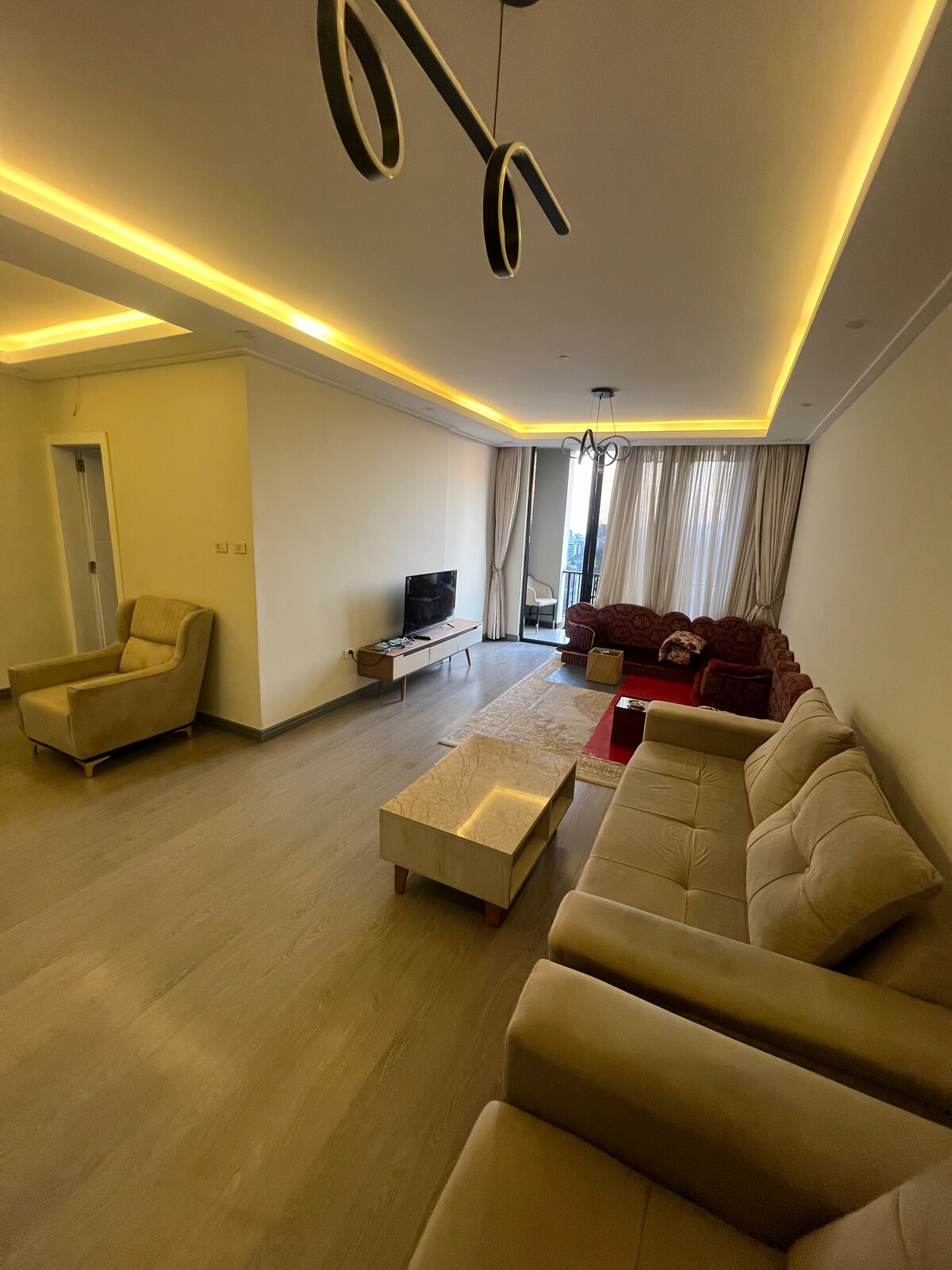 This brand new fully serviced, fully furnished luxury apartment conveniently located at the center of Bole is the perfect place for families or professionals. Just a 8 min drive from bole int'l airport and a short walk to multiple grand malls, super markets, restaurants/bars, museums and parks. * 6 min from Hyatt Regency and Marriott *Includes wifi, elevator, backup generator and an airport pickup. **We also have a 2 and a 3 bedroom apartment. *Discount available for long term rentals**