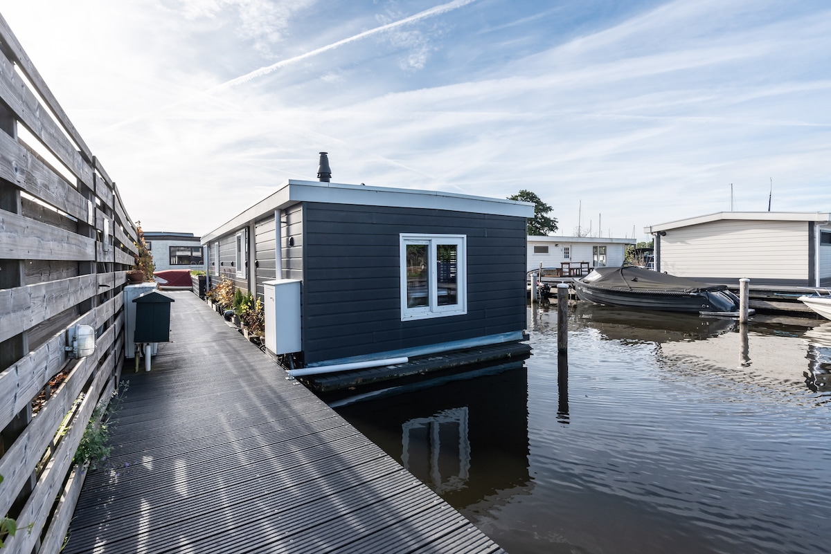 A fully modernized detached houseboat, equipped with all comforts and a clear view of Westeinder the Plassen. The residential park features a spacious living and dining area with a well-equipped kitchen. Below you will find two spacious bedrooms and a beautiful bathroom, equipped with a washer/dryer combination. All energy is derived from solar panels. On the terrace you can enjoy the sun and a view of the harbor. You will also enjoy the peaceful and relaxed ambience of Aalsmeer.
