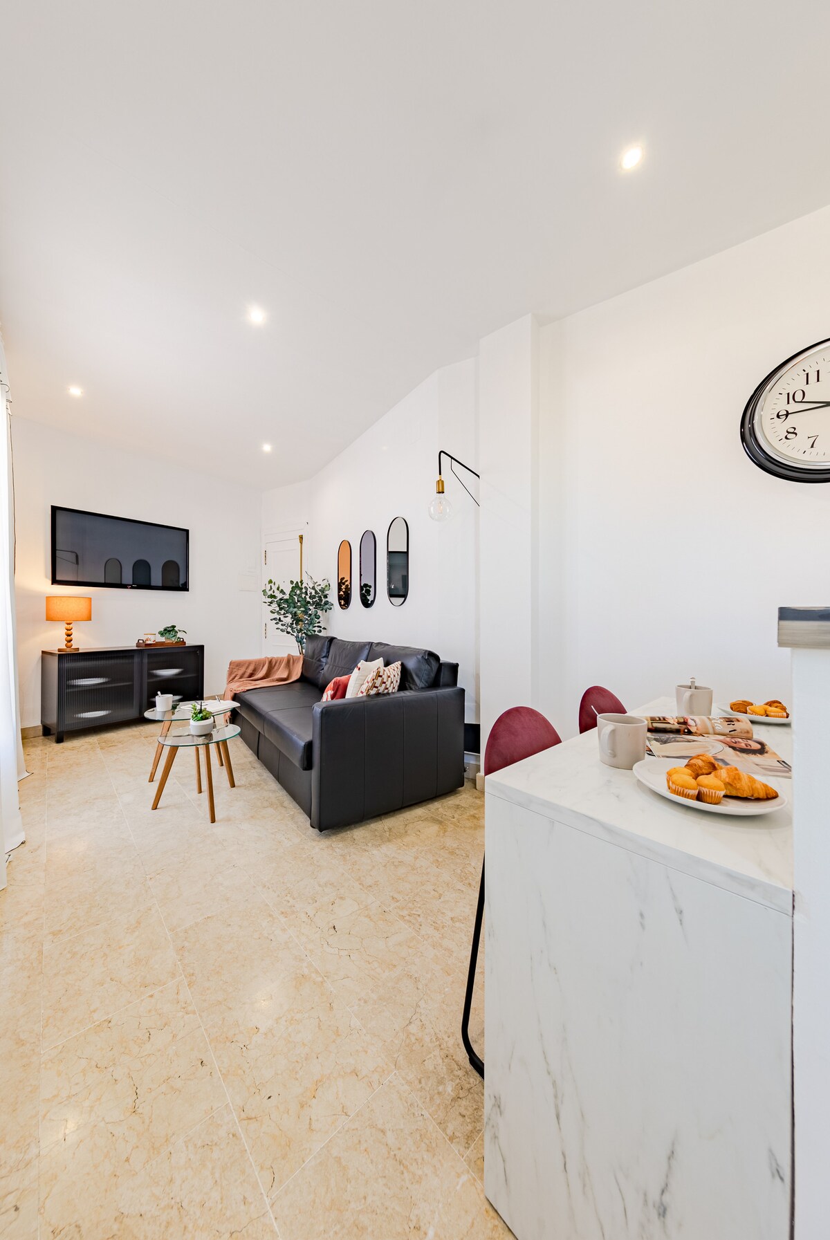 Historic restored Palace House in the heart of the center of Seville. It preserves the architectural essence of Seville- It has unique details that have been respected in the recent transformation. The hand-painted wall frescoes are respected It has a central patio, with a swimming pool. Very cool in summer Luxurious apartment with 1 bedroom and sofa bed in the living room. Very spacious and bright rooms. Fully furnished kitchen. It has superior luxury quality
