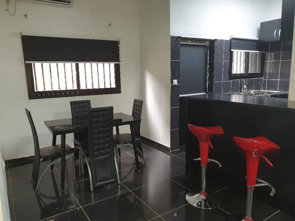 All our furnished apartments-suites-studios have the following amenities: Wifi, Canal SAT, refrigerator, air conditioner, reception service (confectionery and refreshing drink), night generator, borehole, night guard, parking, catering and laundry. We do housekeeping upon request. All our furnished apartments have an exceptional location in the Cité des Palmiers in Douala.