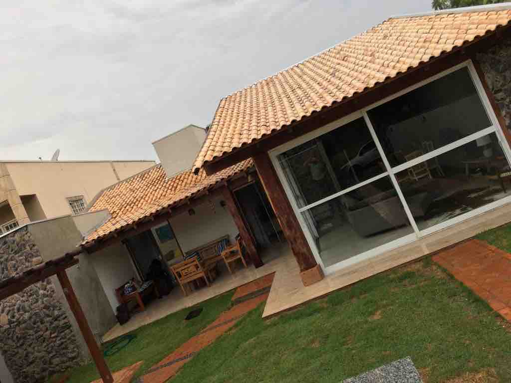 Large house in Bonito MS, with 6 suites, 1 of them master, with hydromassage. All with independent entrances by the balcony with access to the beautiful garden. It has an incredible living space! It accommodates with comfort up to 18 people (between adults and children) It has 2 air-conditioned gourmet spaces, with dining tables and a TV room, 1 of them with barbecue. Beautiful pool with children's beach and Jacuzzi. It is located 3 km from the city center, in a quiet and wooded neighborhood.