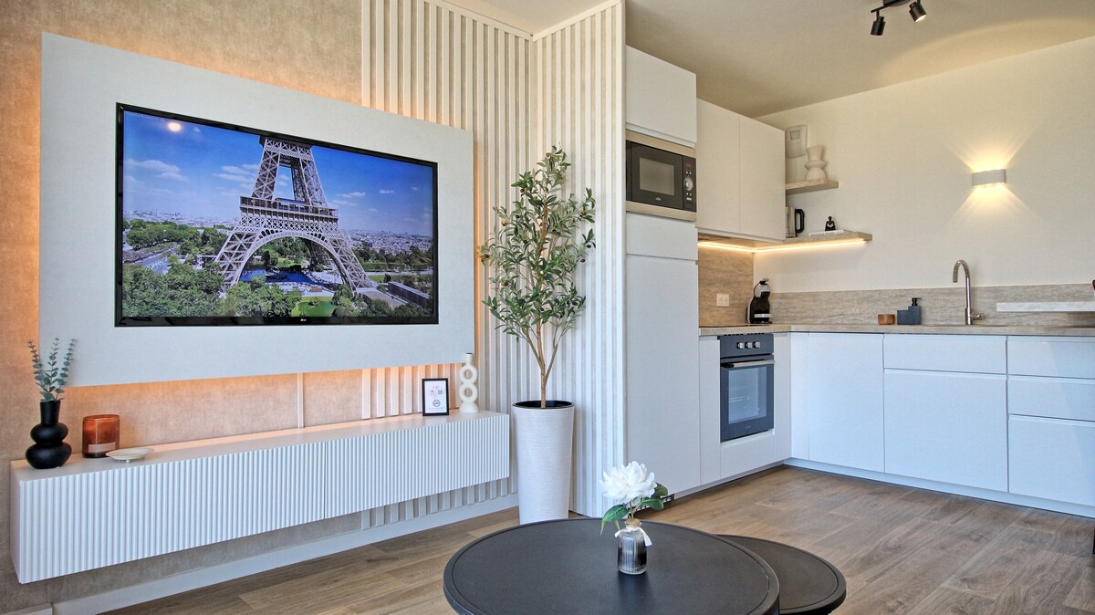 Comfortable studio 100 m from Stade Géo André tram station, with quick access to Paris (20 min). Scandinavian decor, modern ventilation, fast Wi-Fi, equipped kitchen, towels and linens included. Easy connection to metro line 7. Complimentary coffee and quick assistance for a comfortable stay. Great for discovering Paris with ease!