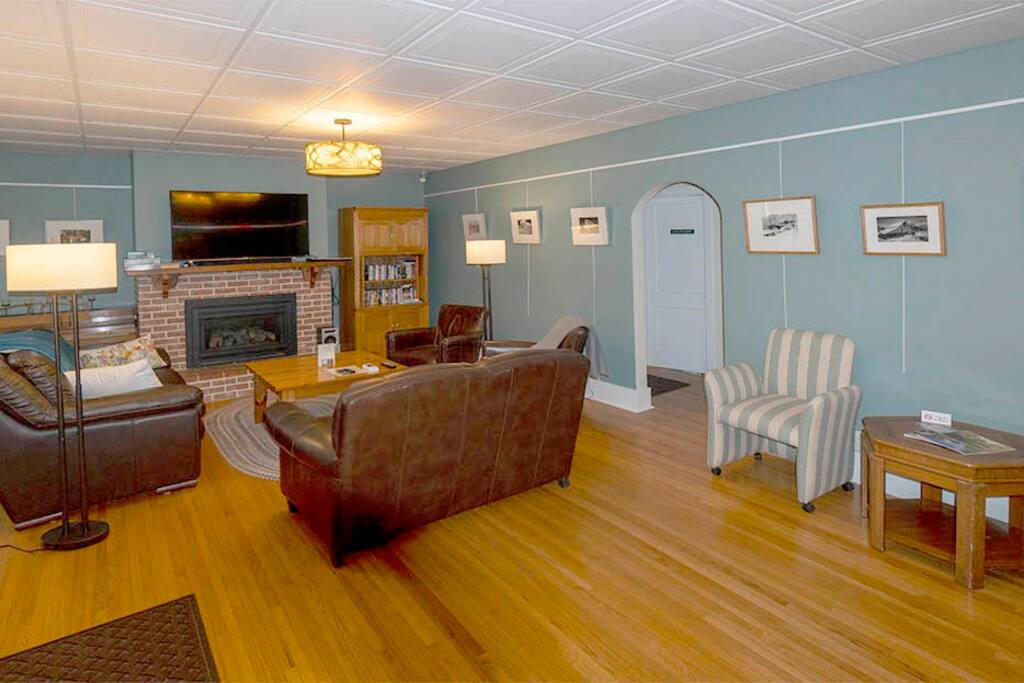 This unique suite has been restored to its 1935 historic ambiance. It has ample space for two or three people with one full size bed and a twin bed. We also have a rollaway bed and a cot that work well for children. The kitchen has a stove, small fridge & microwave. It is furnished with dishes and cookware. Enjoy your meal in the lovely dinette, just off the kitchen. Snuggle into the chaise lounge, turn on the electric fireplace and get comfy.