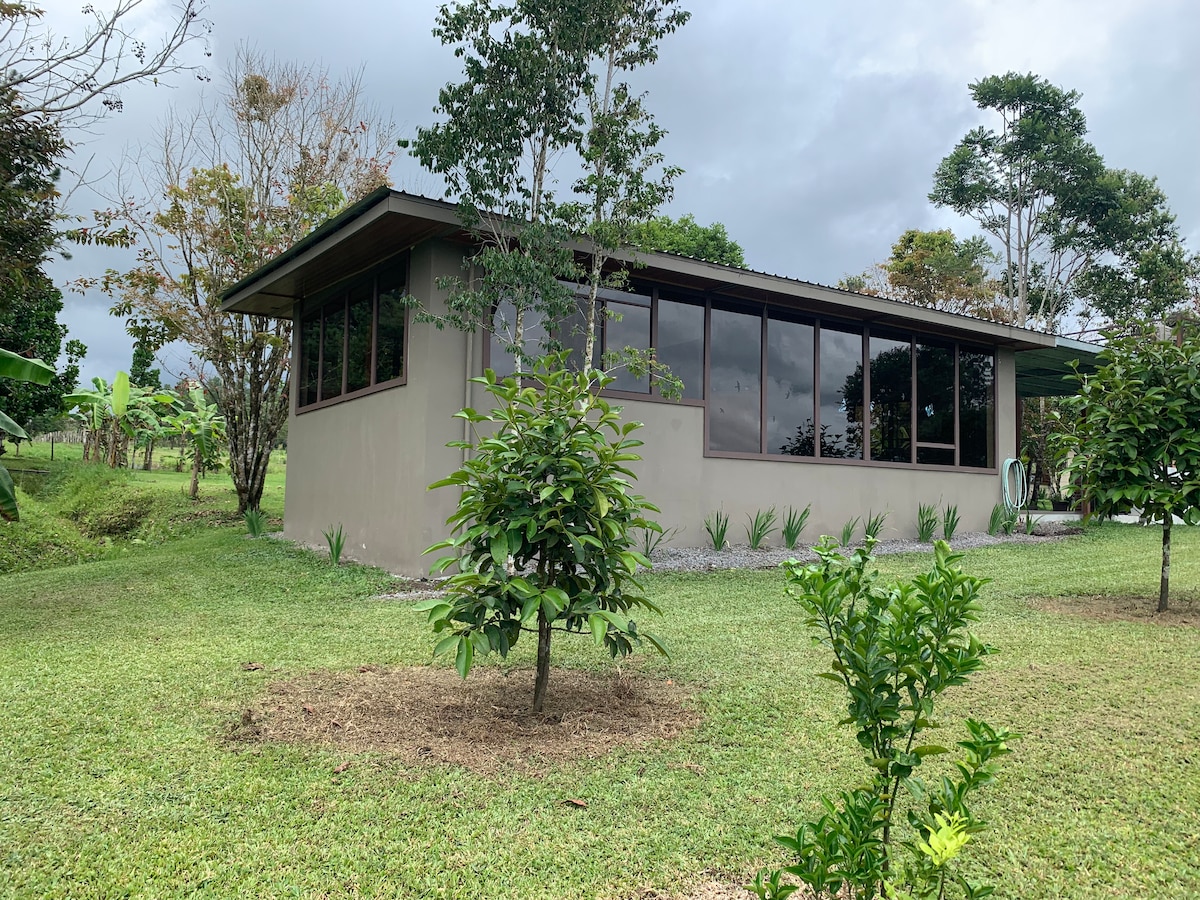 Enjoy the sounds of nature when you stay in our unique guesthouse completed 2024 Located on 25 acres with room to roam and more than 1700 fruit trees with a view of Volcano Baru and surrounding mountains. Listen to the peaceful sounds of exotic birds and wildlife. Our place is central to Boquete, David and Volcán and Cerró Punta Horse back riding available . Walking trail access. You’ll love the serene tranquil surroundings.