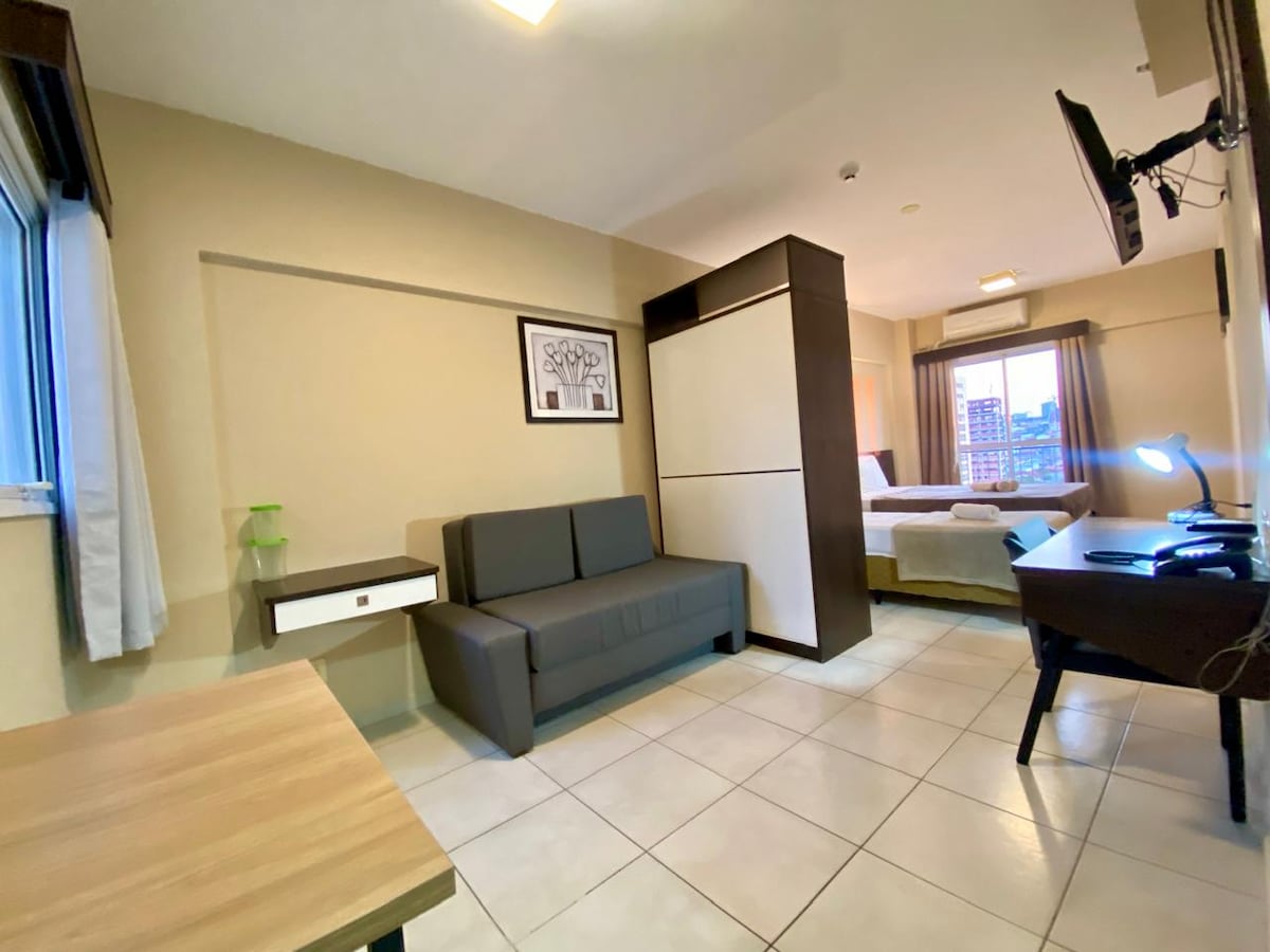 Apê furnished in the kitchen and bathroom with lockers! The master bedroom has window air-conditioning and the second bedroom is full of wardrobe space, if you need it, you can use it. Home utensils are fully available, including original Airfryer Philips Walita. It has 8kg washing machine, ceiling and floor clothes, depending on the sun, dry quickly for another day. In the condominium now, there is a mini market 24hs, right next to the lobby! You may feel comfortable 😊