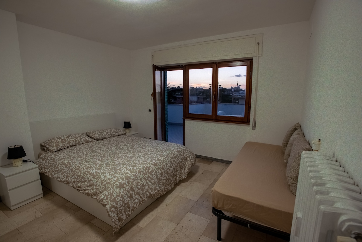 Delightful penthouse on the third floor in a very quiet residential area for exclusive use, at the price of a room. A perfect base for visiting Rome. Close to the university faculties of Tor Vergata and the metro station A. The area offers all kinds of services. 100 meters away you will find an excellent pizzeria, an artisanal ice cream parlor with bar and a small supermarket.
