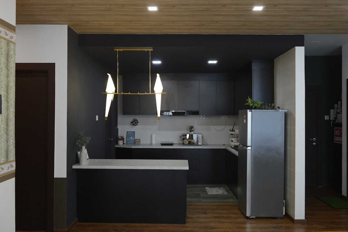 Forget worries in this spacious and serene space of modern homestay at level 6. ✅Unique & beautiful high sky, city+neighborhood view & peacefully quiet place. ✅Smart TV at living room. ✅Relaxation fun stay. ✅In the heart of galacity. ✅10 minutes drive to vivacity. ✅10 minutes drive to airport. ✅10 minutes drive to saradise. ✅Nice foods, famous restaurants and cafes are in near distance! For security purposes. A photo of your identity card, a photo of you and your car is required.