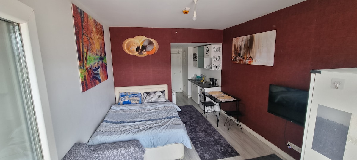 @izmirgunlukdaire All of our studio apartments are the same. Air conditioning, central heating, radiators, central 24/7 hot water, 1 double bed + 1 sofa bed (large armchair). If needed, the armchair can be turned into a bed. In addition, the apartments have a table-chair - refrigerator, washing machine - TV - hair dryer - Wi-Fi - plates, glasses, etc. There is no oven or stove. Not suitable for cooking. We have apartments suitable for cooking, ask us