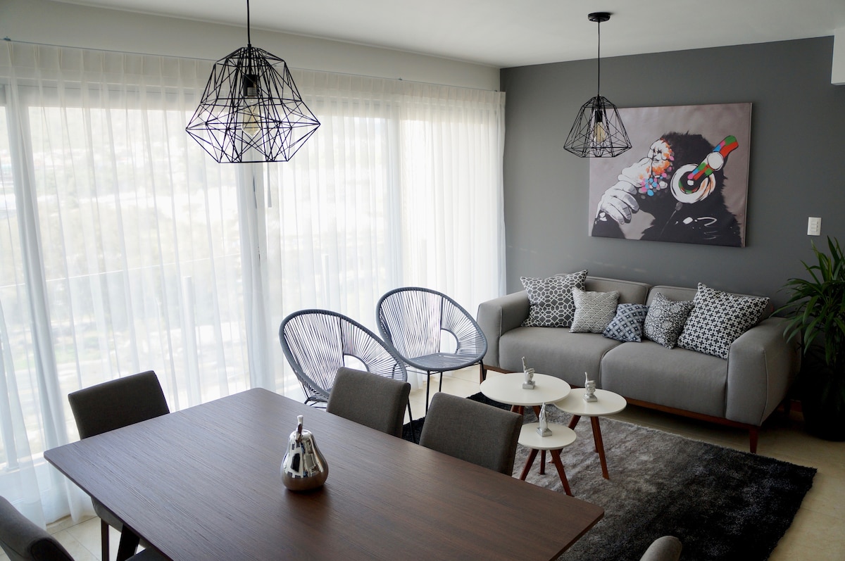 Confortable y moderno en planta baja con excelente ubicación cerca de Plaza del Sol y la Expo Guadalajara. A tan sólo unas cuadras de las avenidas López Mateos y Mariano Otero. Muy confortable y decorado con mucho estilo, muebles, accesorios y utensilios seleccionados especialmente para que disfrutes tu estancia, cuenta con cocineta, no con estufa, pero si lo solicitas te podemos proporcionar una parrilla de inducción. Cuenta con aire acondicionado para propiciar un ambiente fresco y agradable