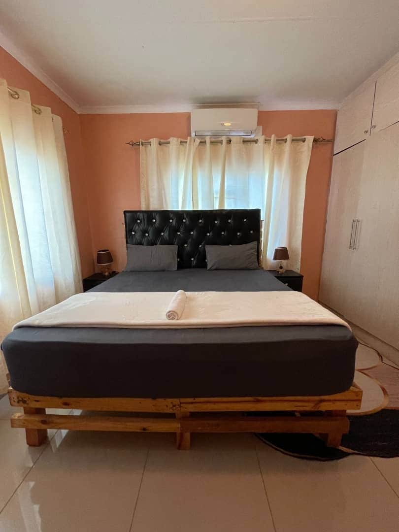 Stay in a new, modern 1-bedroom apartment with a fresh, clean feel and crisp white bedding. The space is well equipped with almost everything you need for a comfortable stay. Enjoy a beautiful garden, secure surroundings, and plenty of parking. Centrally located in the village and not far from the mall, offering both convenience and peace. Ideal for guests visiting for weddings, funerals, or work trips, as well as short getaways.