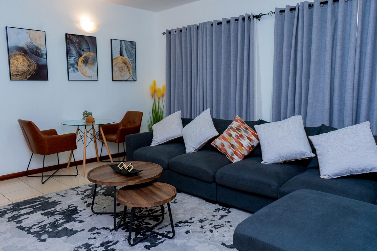 Situated just minutes from shopping malls, restaurants, a hospital, and Sir Seretse Khama International Airport (only 12 minutes away), our apartment offers unparalleled convenience. Designer Beds: Experience ultimate relaxation with our state-of-the-art mattresses and Egyptian cotton bedding. Modern Appliances: Cook with ease using our fully equipped kitchen featuring a dishwasher, fridge, coffee machine, and complete cutlery set.