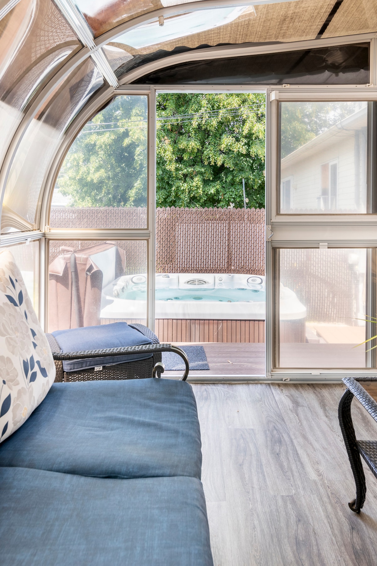Perfect entire family vacation home in Saint Hubert. The spacious house features: large living room, fully equipped kitchen, free parking, private courtyard, hot tub, home theater, laundry room, air conditioning, workspace. In addition, the house is only 25 minutes from Montreal, you can easily explore the city during your stay. Enjoy all the comforts of home while having all the attractions of the city just a few minutes' drive away.