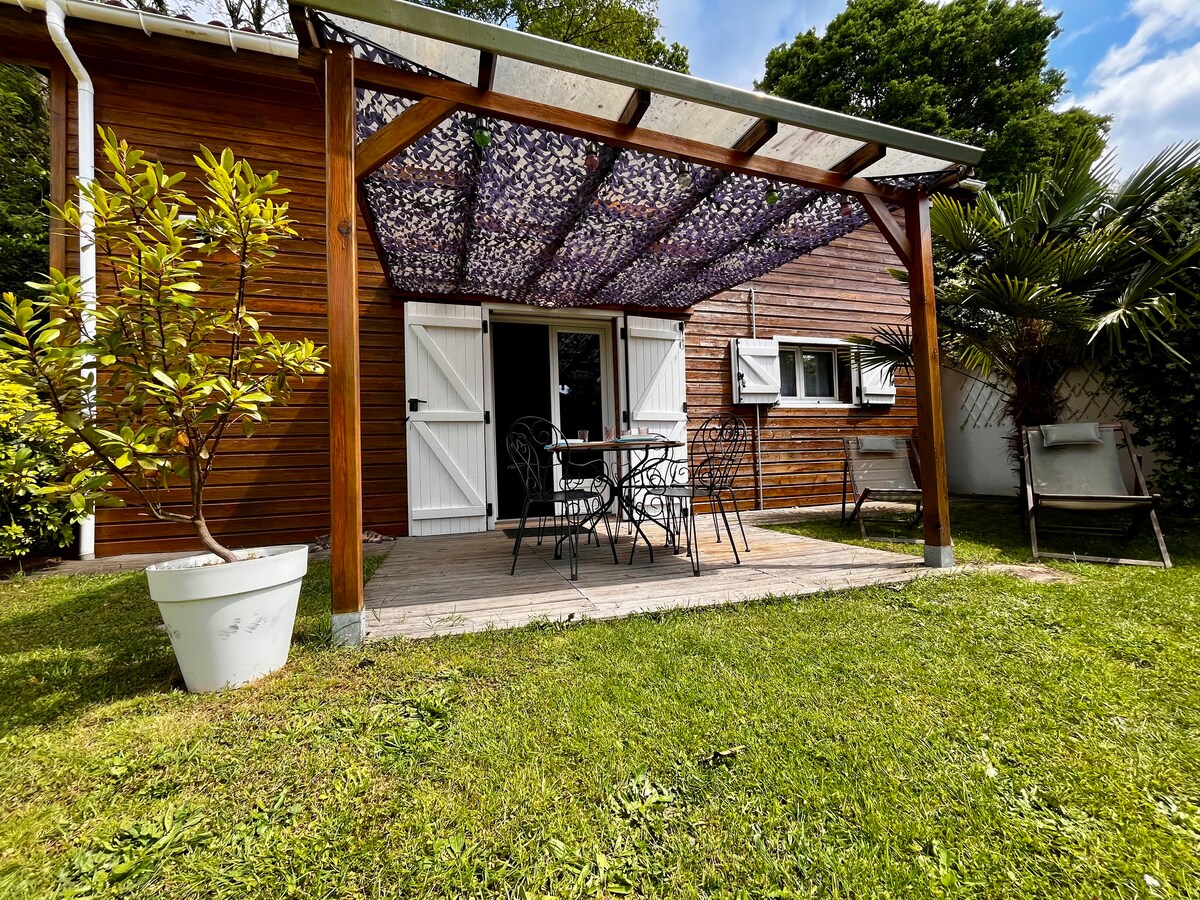 Cottage/chalet with warm and refined decor. The cottage is located on the property and is completely independent. The accommodation includes two air-conditioned bedrooms upstairs. The large kitchen/living room opens directly onto the covered terrace and the garden of the property. The cottage is heated by a pellet stove which gives an alpine cocooning atmosphere in winter. In summer, the garden furniture allows you to enjoy a green space in the shade of a chestnut tree, the countryside in the city.