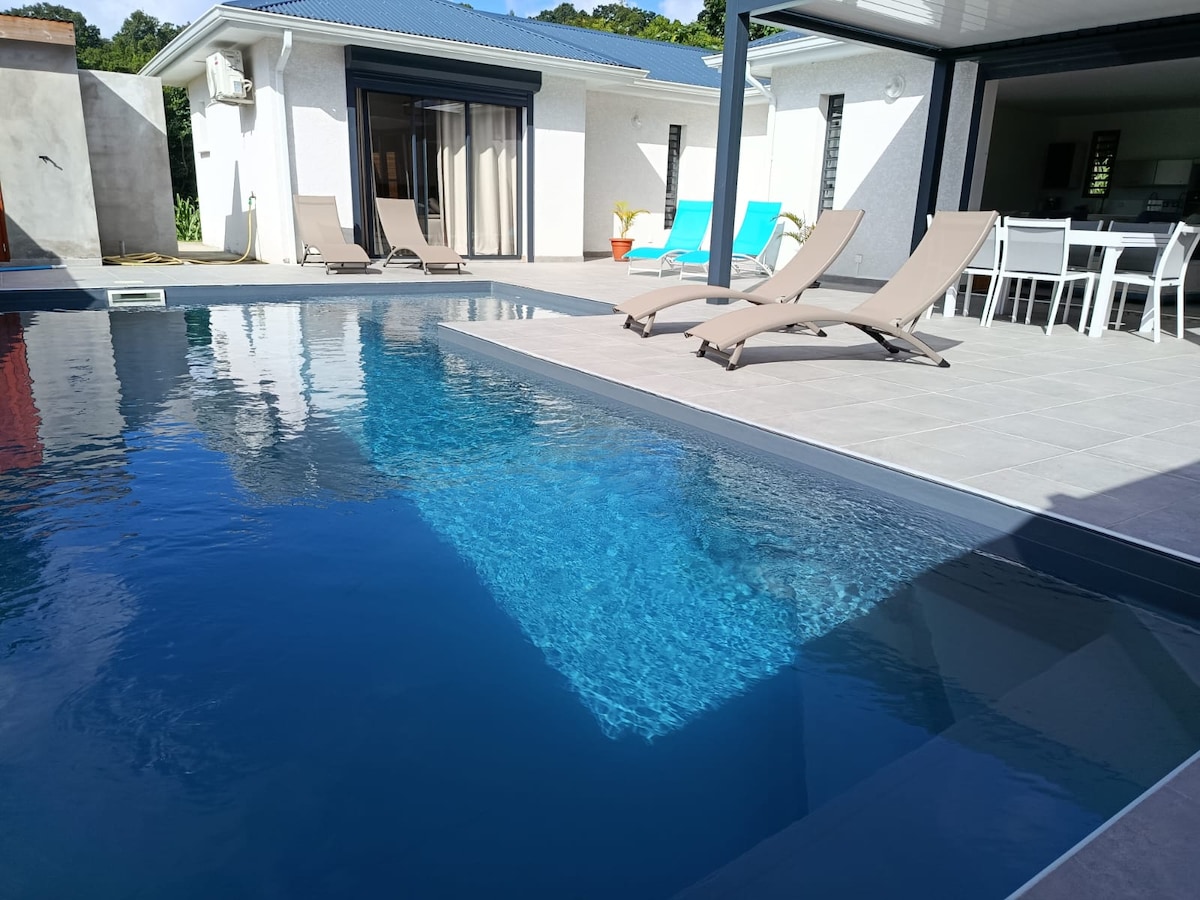 Beautiful lively villa facing the Caribbean Sea 3-star furnished tourist accommodation Come with family or friends and enjoy the comfort of having your own bathroom (shower) and separate toilet The kitchen opens to the living room and is equipped with a multifunction pyrolysis oven, induction cooktop, microwave, dishwasher, large fridge freezer, washing machine, dryer, iron and ironing board, vacuum cleaner Orange fiber wifi TV Infinity pool terrace Barbecue