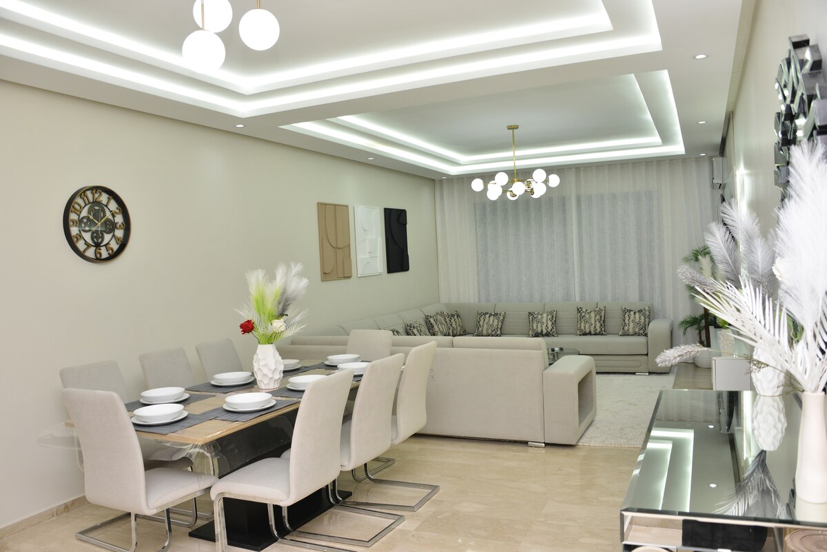 Welcome to this luxurious and spacious apartment which offers a harmonious blend of comfort and style. The apartment is located in the heart of Maârif in Casablanca with various amenities within just few minutes walking distance. Key features: - Complimentary parking slot - Family friendly - Baby crib / high chair - Remote working friendly - Smart lock - Secure and well-maintained building - Wifi - Smart TV - Coffee machine - Well equipped kitchen - Elevator - Interior garden