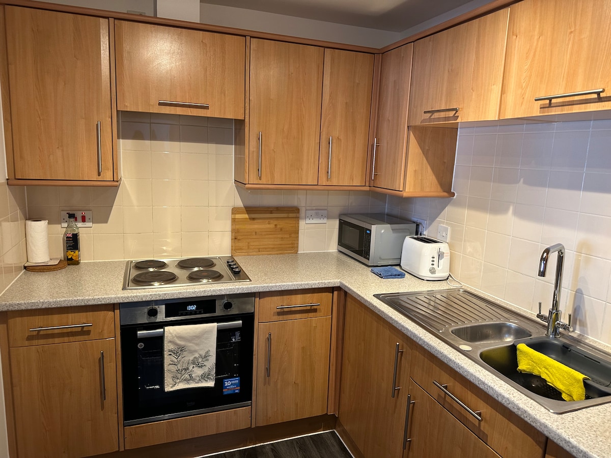 The modern flat is just a 1-minute walk from Bournemouth’s Blue Flag beaches and in the heart of town with shops, restaurants, and amenities nearby. A short walk takes you to the BH2 Leisure Centre, award-winning gardens, and the iconic pier. As it’s centrally located, some city noise is expected (earplugs provided). Guests enjoy flexible, secure self-check-in by collecting keys from a local shop with a one-time code.