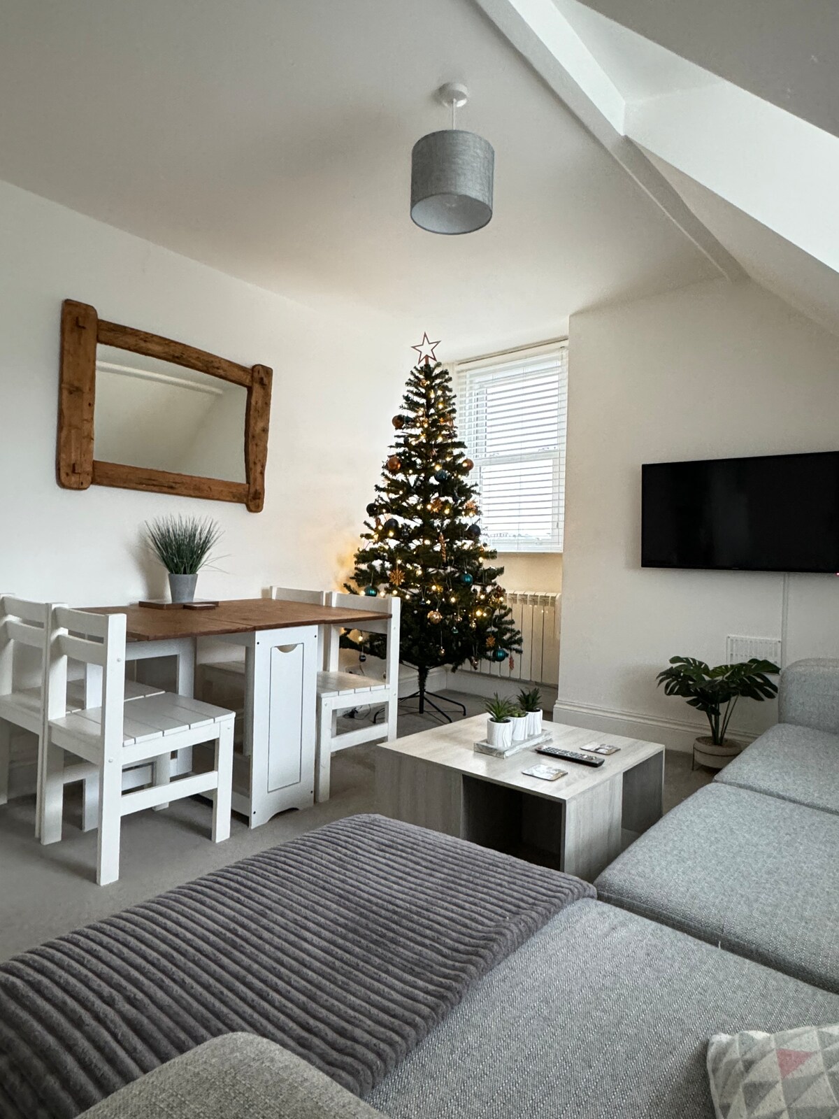 Enjoy your perfect getaway in this award winning 2 bed penthouse apartment with 180 degree sea views in the heart of the tranquil Alum Chine area of Bournemouth just a few minutes walk from the beach. The property boasts two dining areas, one of which sits on the large balcony with views across Bournemouth beach and a bespoke wood burning stove for the winter nights. The open plan kitchen leads onto a cozy living room where you can enjoy Sky Glass TV entertainment through super fast WiFi.