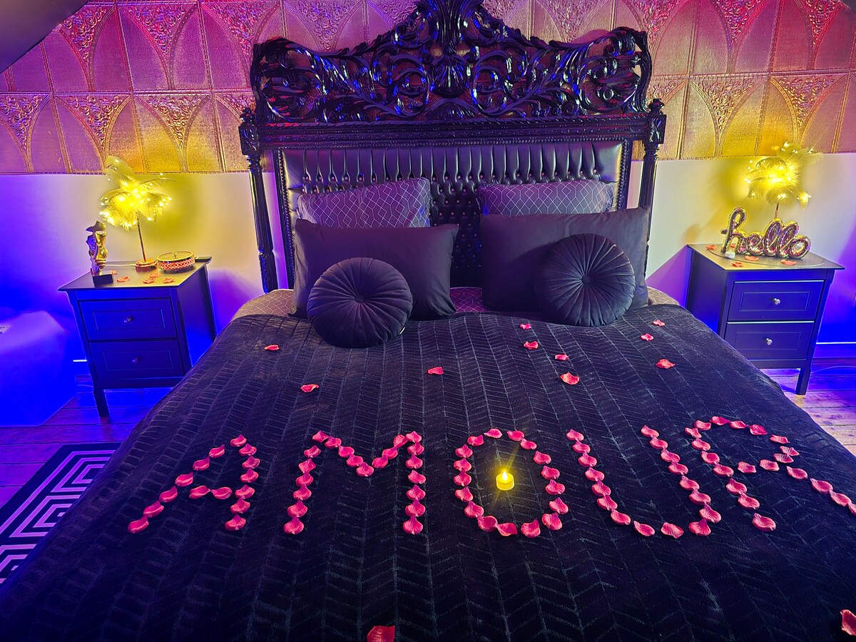 We offer you a unique experience in a 60 m2 house with many wellness facilities (INFRARED sauna, balneotherapy bathtub, 360° massage seat) upstairs you have a bedroom with a large king size bed 180 x 200 and the little extra in this romantic getaway will be its completely enchanting secret room (tantra chair, mirror, St. Andrew's cross) You will have access to a fully equipped kitchen (oven, microwave, Dolce Gusto, kettle) Breakfast is included
