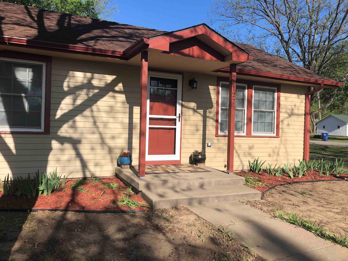 Come stay at a piece of Kechi history! This cottage was once an antique shop when Kechi was named the Antique Capital of Kansas. In the early 2000's it was renovated into a charming 2 bed 1 bath home. Nestled in a peaceful neighborhood just far enough out of the city. Come experience small town living and all Kechi has to offer. Quiet mornings and fun-filed afternoons await you at this unique experience. Full kitchen, spacious rooms, cozy front and back porch, family games & a coffee bar!