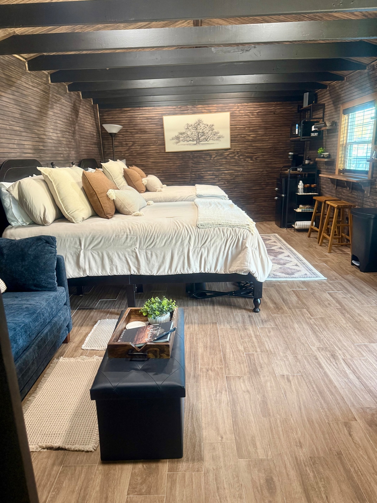 Rustic Retreat near the Satilla River – Unplug & Reconnect Tucked beneath the pines in peaceful White Oak, GA, Rustic Luxe is a serene getaway designed for connection — with nature, loved ones, and yourself. Just a short walk from the Satilla River, this one-of-a-kind property blends rustic charm with modern comfort. Gather around the fire pit, relax in the private hot tub, or share a meal on the screened-in porch. This is a place to slow down and savor.