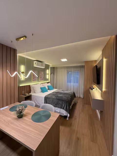Kick back and relax in this calm, stylish space. Independent entrance, on the side of the main house, with secure parking in a gated community. Very cozy and with lush forest in front (very green and pure air). Come and discover why this space is called "Canto do Sabiá". Bedroom (double bed, closet and TV), living room (sofa bed and air-conditioning), kitchen (fully equipped, with electric oven and stove, microwave and refrigerator) and bathroom, in a combined space, decorated with great affection.