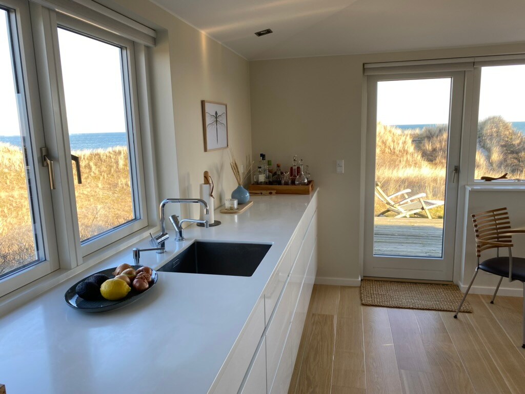 A completely unique and well-maintained cottage with high aesthetics in the first row of dunes. The cottage has private beach access and 180 panoramic views of Kattegat. The house is designed for the good life indoors and outdoors, with all the amenities that can make a vacation especially good. Vacation by the water, morning swimming, kayaking, hiking, cycling, and reading good books. And as a starting point for excursions in the beautiful North Jutland. Close to shopping: 2 km to Strandby, 10 km to Frederikshavn and 30 km to Skagen. No pets of any kind and no smoking