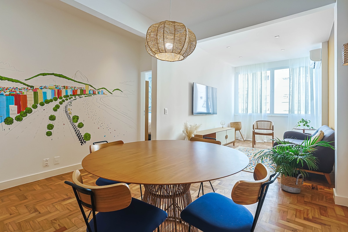 Enjoy Rio Copacabana / Ipanema With style in this beautifully designed, fully equipped apartment located in one of the most desirable areas of the city just 100 meters from Copacabana Beach and 300 meters from Ipanema. Ideal for couples, friends, families, and business travelers looking for comfort, design, and an unbeatable location. 2 comfortable bedrooms with Queen-size beds . Secure building with 24/7 doorman • Air conditioning in every room • High-speed Wi-Fi