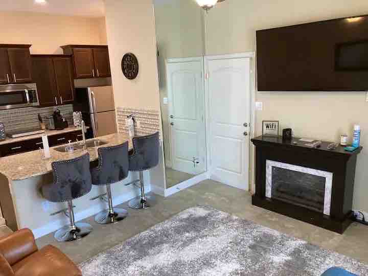 Private & Cozy Guest Suite with Hardwood Floors and Modern amenities. Champion Suite is located in a safe golf course community; and combines comfort and convenience with features like: - Hardwood floors - Fully equipped kitchen - Nespresso coffee machine - Walk in shower - Work station - Washer & Dryer - 2 smart TV's - Fubo TV, Netflix, Disney+ - High Speed Wi-Fi - King Bed - Cozy Living Area - Central A/C & Heater Conveniently located 20 min from NASA, 25 min from downtown Houston.