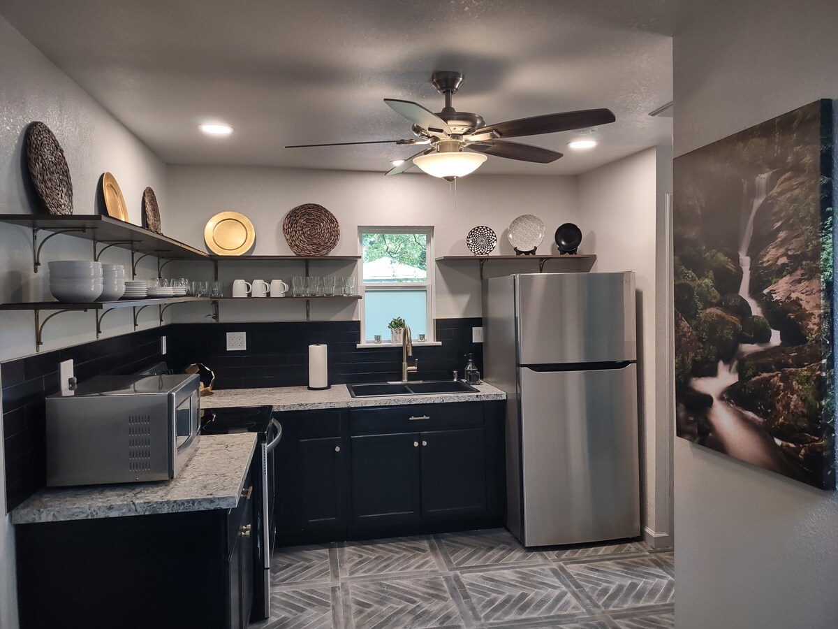 This private guest suite offers comfort,privacy and convenience for longer stays 🏠THE SPACE: → Private bedroom →Private full bathroom →Full kitchen (no sharing) →Laundry closet with stackable washer/dryer →A/C controlled via Alexa →Water softener filtration system →Workspace You'll have your own fully self-contained living space, with the only SHARED AREA being the MAIN ENTRANCE to the home. Once inside, a DOUBLE DOOR in the hall separates you from the rest of the house. ✅GATED neighborhood