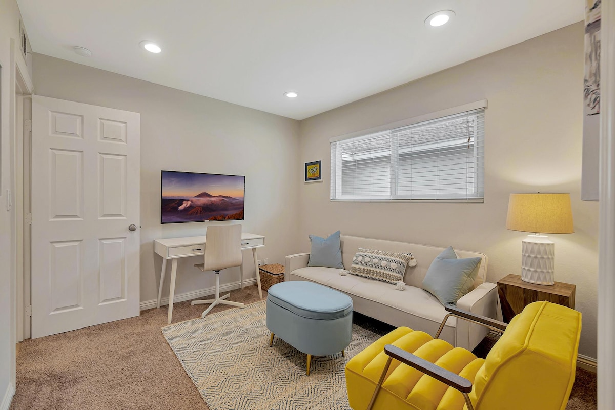 Hosted by That Yellow door! This open concept spacious home is located in sunny Fullerton, CA. Prepare meals together in our large, fully stocked kitchen that flows right into the dining and living room or BBQ in the beautiful backyard with a remodeled pool & spa. Pool and Spa are available year round to take a dip or relax in spa. Outdoor and indoor games family & friends can enjoy!
