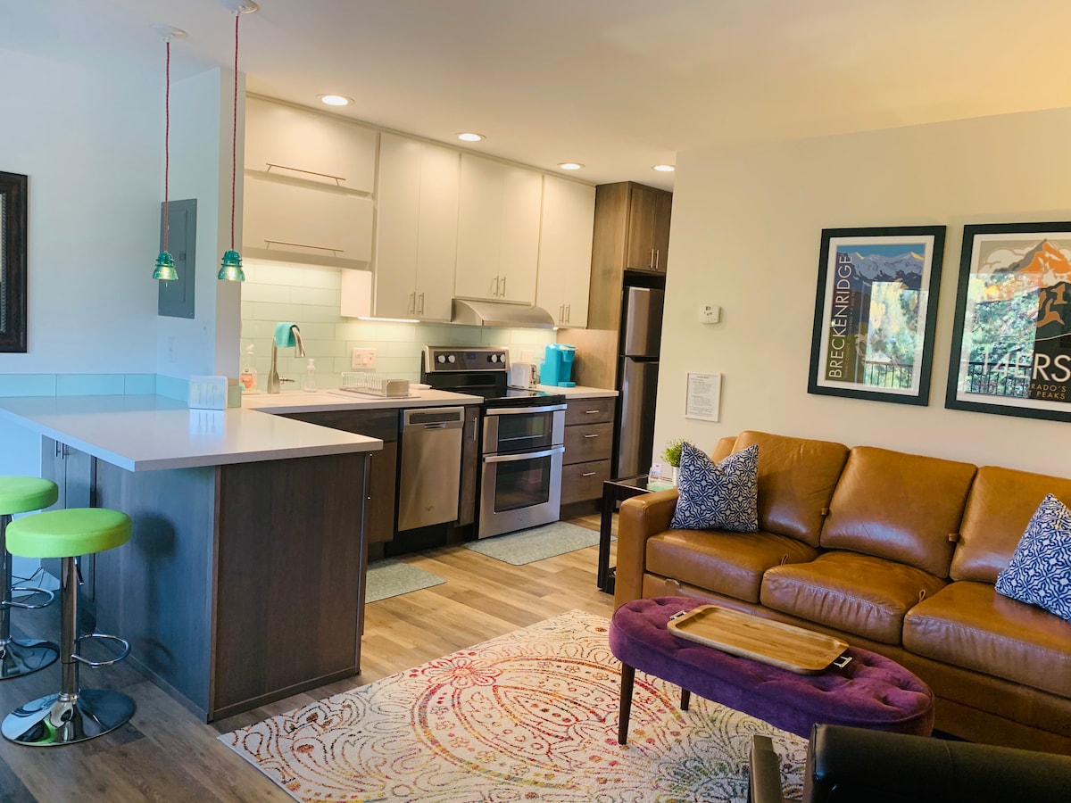 BEST LOCATION IN Breckenridge, 1 bedroom condo, ski-in across the street from 4 o'clock ski run and walk out. Steps from literally everything Breck has to offer you. Enjoy an excellent location right in the middle of town and steps from hiking and biking trails. Over 100, restaurants, bars and shops within walking distance! 4 hot tubs, heated pool, fitness center and sauna/steam room. Due to COVID19 extra measures are being taken to ensure safety and cleanliness for our guests.