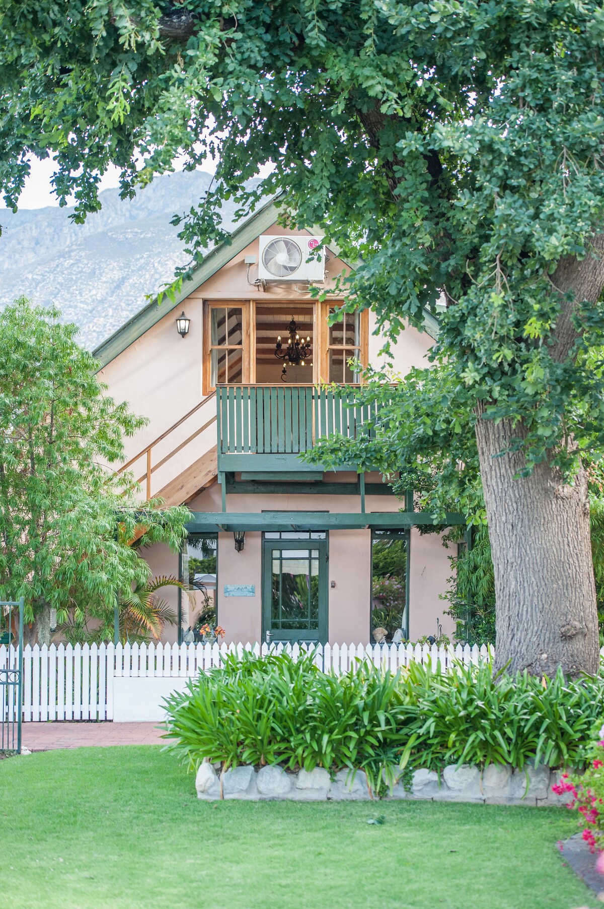 Comfortable and reasonably-priced self-catering accommodation in Greyton, South Africa. The Ocean Breeze Suite consists of two upstairs self-catering loft-type units/apartments with magnificent views. Access can be gained between the two apartments via a lockable door. Beautiful garden and swimming pool area with braai options for both pool area and garden. Parking on property behind padlocked gate. All welcome! Helpful and friendly hosts.