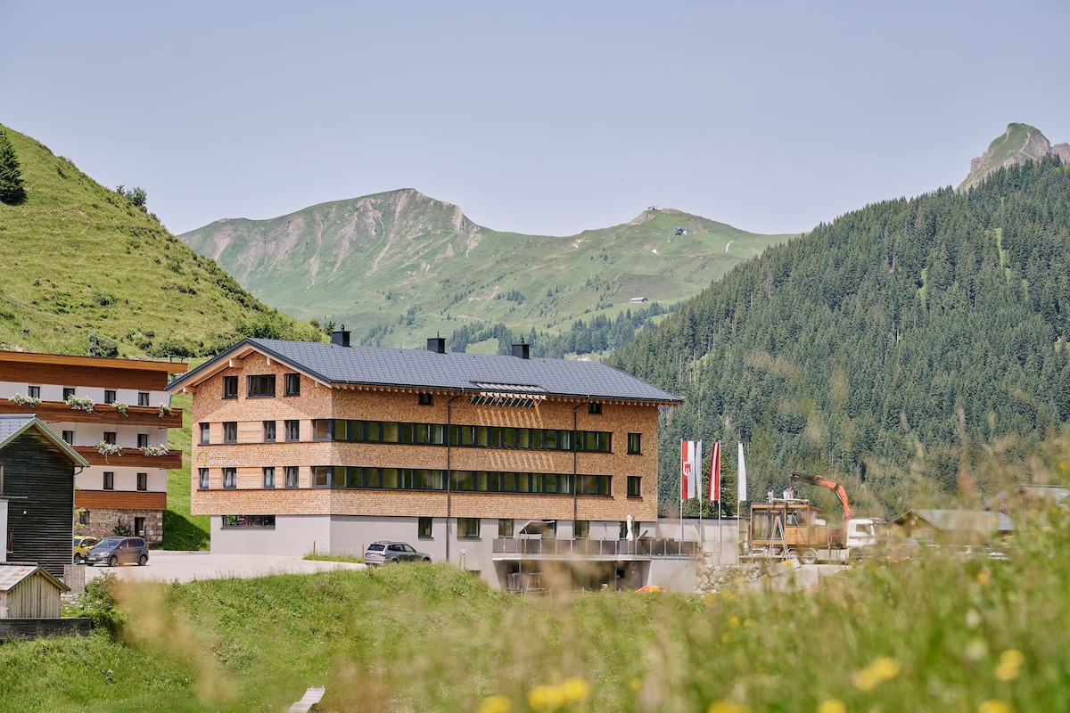 Rössle Appartements In unserem neuen, modernen und regional erbautem Holzhaus in Faschina warten 5 unterschiedliche Typen mit wunderbaren Aussichten in die Bergwelt des Großen Walsertales auf Sie. In den allergikerfreundlichen Appartements mit gemütlicher Ausstattung lässt es sich herrlich entspannen und vom Alltag abschalten. Wenn Sie bei uns in einem der unterschiedlichen Appartementtypen urlauben können Sie auch ein regionales Frühstücksbuffet in unserem schönen Frühstücksraum buchen.