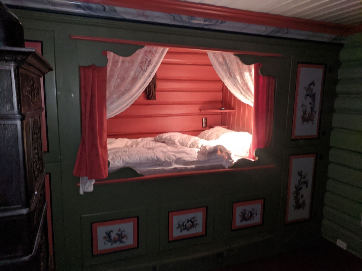 Come and stay in an old traditionally farmhouse for employees at a Norwegian farm in Noresund, 100 km and approximately 90 minutes drive from the city-center of Oslo. Two hours and 155 km drive from Oslo Airport Gardermoen (OSL). This is in the heart of the Norwegian fairytale tradition. It is about 450 meters from the lake and 10 minutes drive from the ski slopes of Norefjell. The high mountains of Norway starts here. The trolls are in the woods just behind the cabin. They are all nice.