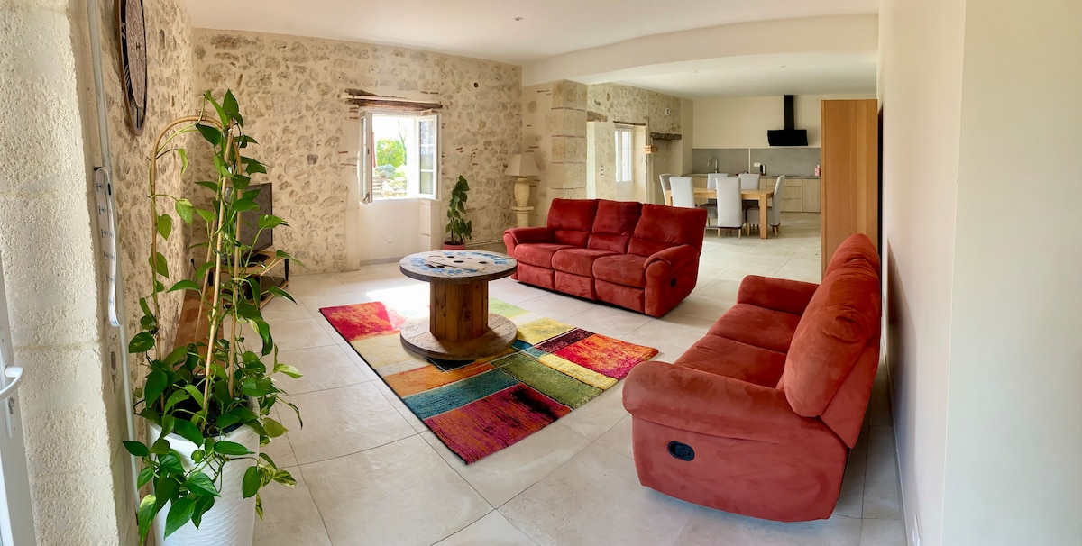 Stone townhouse ideally located in the heart of a small dynamic village. A few steps from all the shops Ground floor with a fully equipped kitchen (8.5 m²) open to a 37 m² living room with quality sofa bed. A first floor is composed of a toilet, a bathroom (Bathtub and walk-in shower) as well as two bedrooms. The second floor is a large attic room with air conditioning. Optional sheets and towels (+€10/Room)