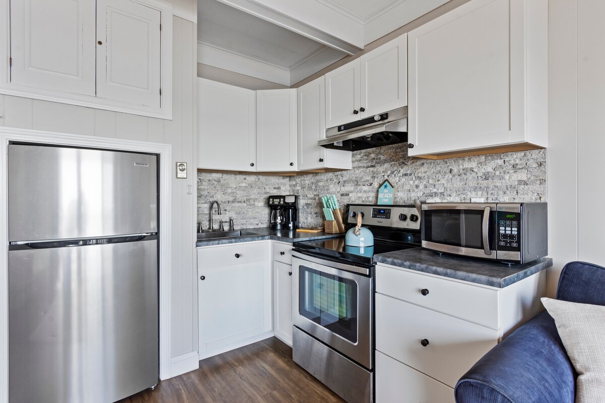 Escape to this rare beachfront retreat where the ocean is your front yard. Unlike inland rentals, this studio condo offers direct beach access and the calming sound of waves to lull you to sleep. No driving, no packing—just step outside and you're there. Enjoy coffee on the deck, spend the day swimming or sunbathing just steps away, and watch the sunset over the water—all without leaving home. It’s the kind of coastal escape inland properties simply can’t match.