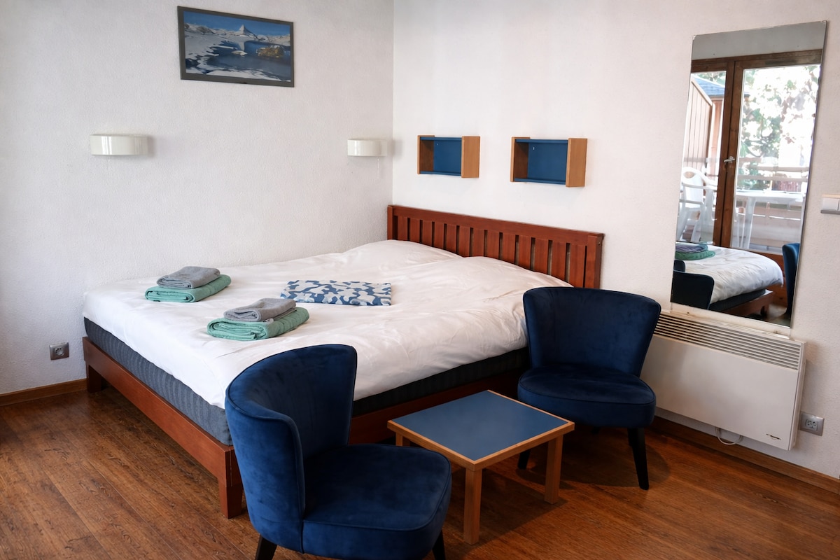 Nice renovated studio with a double bed and 2 bunk beds. 28 m², you will be comfortable storing the imposing equipment for skiing. The apartment is very well equipped with new, good quality equipment: Dyson vacuum cleaner, 43" (108 cm) LG 4K TV, oven, dishwasher, kettle, coffee maker, toaster, raclette, fondue... The bathroom is equipped with a shower and a towel dryer. PLEASE NOTE bed linen, towels and tea towels are not provided.