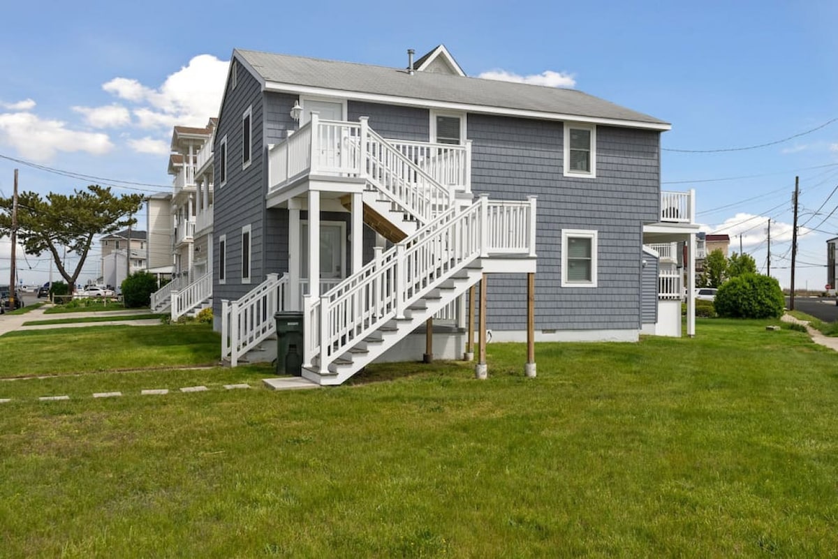 Welcome to your dream beach retreat — just 2 blocks from the sand and steps from everything Ventnor has to offer! Key Features: - Fully remodeled home with 10'+ ceilings and a 200 sq ft patio with peekaboo bay views - Driveway parking for 2 cars for this unit and 1 car for downstairs unit tandem style. - Dog-friendly with a $80 pet fee (Sorry, no cats — we're highly allergic 😔) - Smart TV (Netflix, Hulu, YouTube — just log in with your account) - 4 beach chairs included