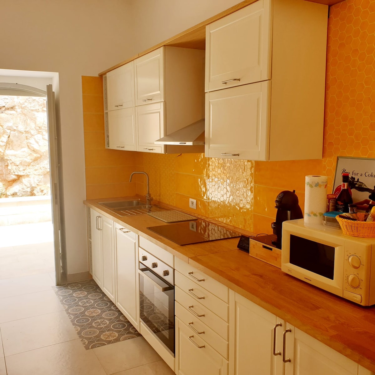 My accommodation is an independent studio, very bright, located next to the house where I live with my husband and a cat, it is located in a building of the late 1800s, located in the beating heart of the ancient village, it has been recently renovated, preserving the beautiful floor in decorated cement, a characteristic of the period houses of our area;