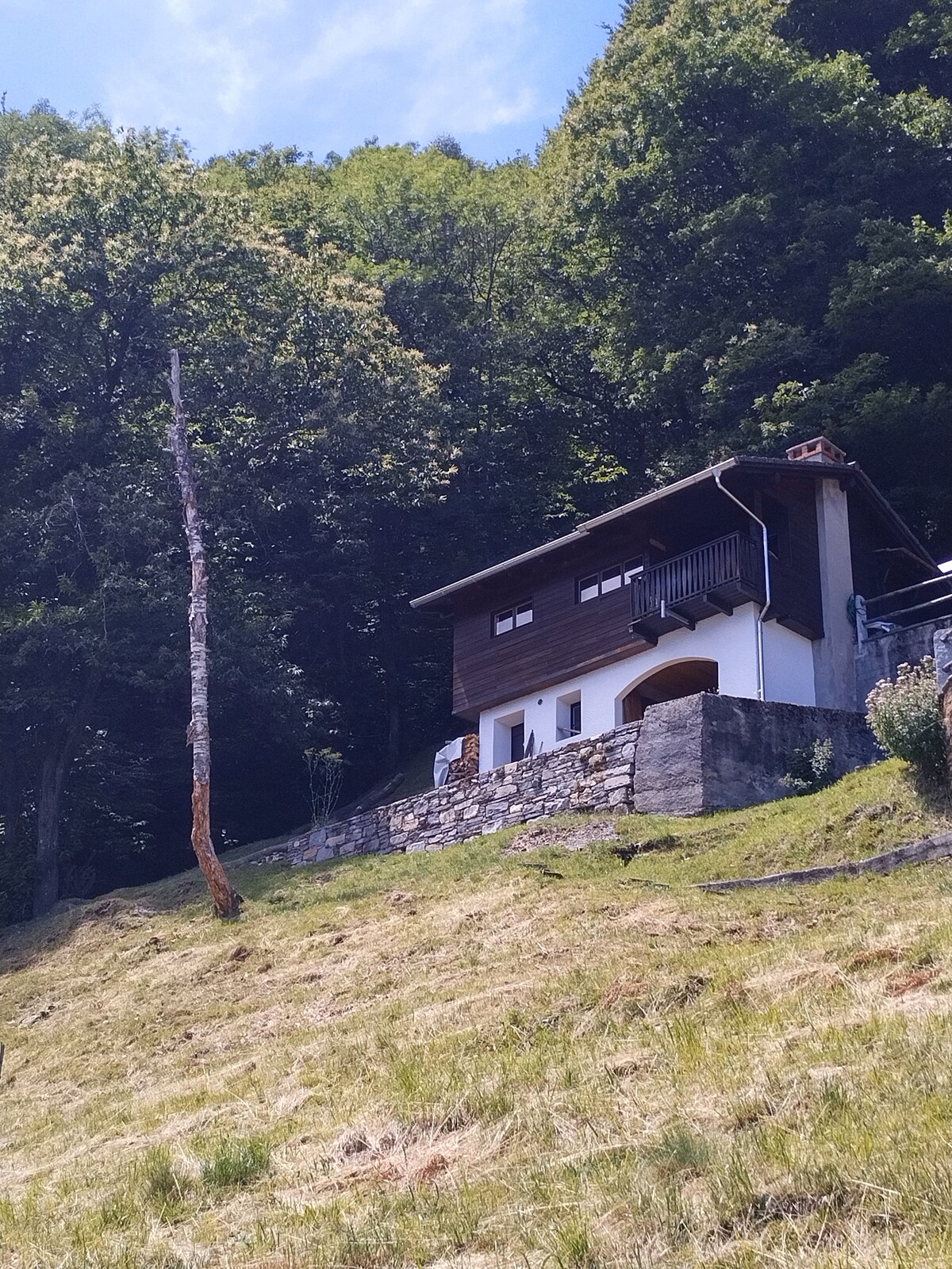 Wandern, atmen, sein! In unserem abgelegenen Mini-Chalet. Balkon/Grill/Terrasse Toilette+Bad mit Dusche Mobiles Solarpanel+Batterie Elektro-Kühlbox Warmwasser/Kochen: Gas Heizung: Holz-Kamin Per Auto: Parkplatz 1km entfernt, hügeliger Wanderweg (Rucksack!) Per ÖV: Fussmarsch ab Arcegno von 90Min/500m 🧗 UBER: ca. 50 CHF ab Locarno bis zum Parkplatz 2 Restaurants bei Parkplatz Ausrichtung: Ost. ☀️ Für unabhängige, unkomplizierte Leute ohne Angst alleine im Wald! 🌳🌲 Ankunft: vor Dämmerung!✨