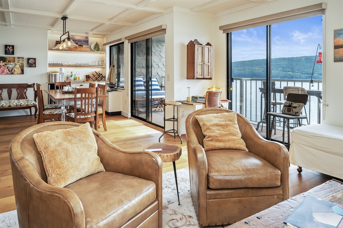 Finger Lakes Best Lake View Chic Condo + Fireplace
