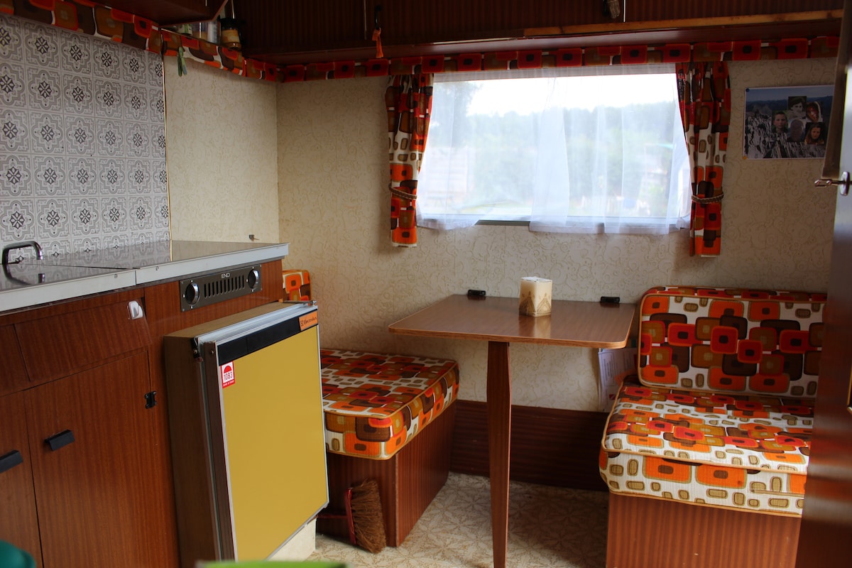 Small vintage and cozy caravan, set on a plot on the edge of the forest. Land (2500 m2) shared with my yurts (main house) and 3 other rentals. Ecological management (permaculture), self-contained solar electricity site, dry toilet. On reservation: breakfast, meals, massages (see "interaction with guests" section). Many hiking trails in the forest. 10 minutes from Dinan, 25 minutes from the sea and the Rance, 45 minutes from Mont St Michel, Rennes or Brocéliande...